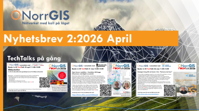 Kassören inleder/reflekterar Hej NorrGIS-medlemmar! Nu är vi inne i den femte årstiden och dagarna blir allt längre och ljusare och många passar på att vara ute och njuta av vädret och våra fina miljöer mellan kust till fjäll. Jag som inleder nyhetsbrevet denna gång heter Erika Kristoffersson och är kassör i NorrGIS sedan förra året.…